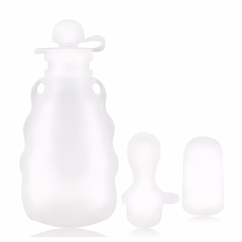 En smart og gjenbrukbar smoothiepose som gjør det enkelt å servere og oppbevare hjemmelaget babymat, fruktpuré, yoghurt, melk eller smoothies. Posen rommer 180 ml, og kan både fryses ned og oppbevares i kjøleskap. Den tåler også oppvarming i mikrobølgeovn eller i varmt vann, noe som gjør den praktisk i en travel hverdag.