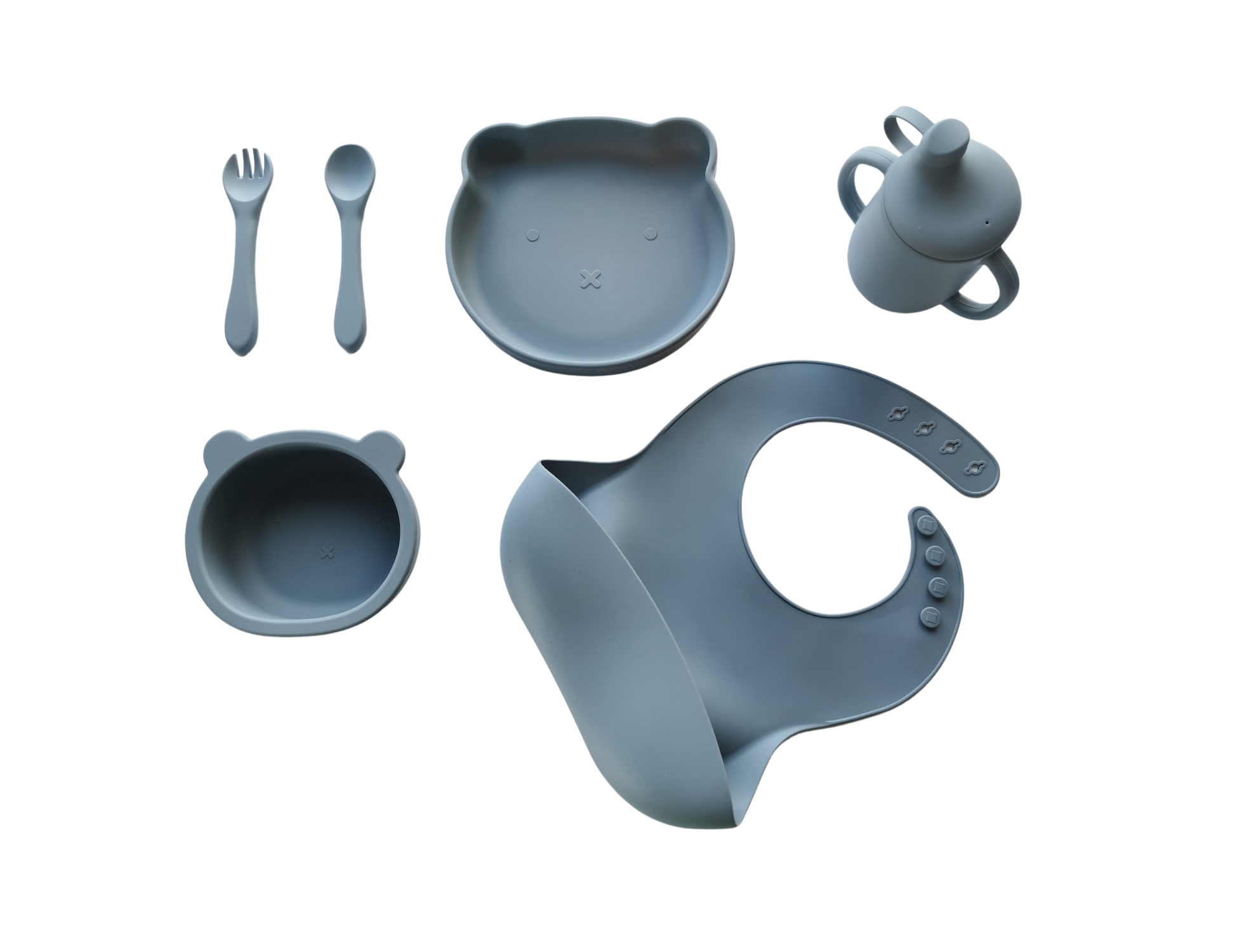 Bjørne spisesett pakke i silikon, grå - gavepakke