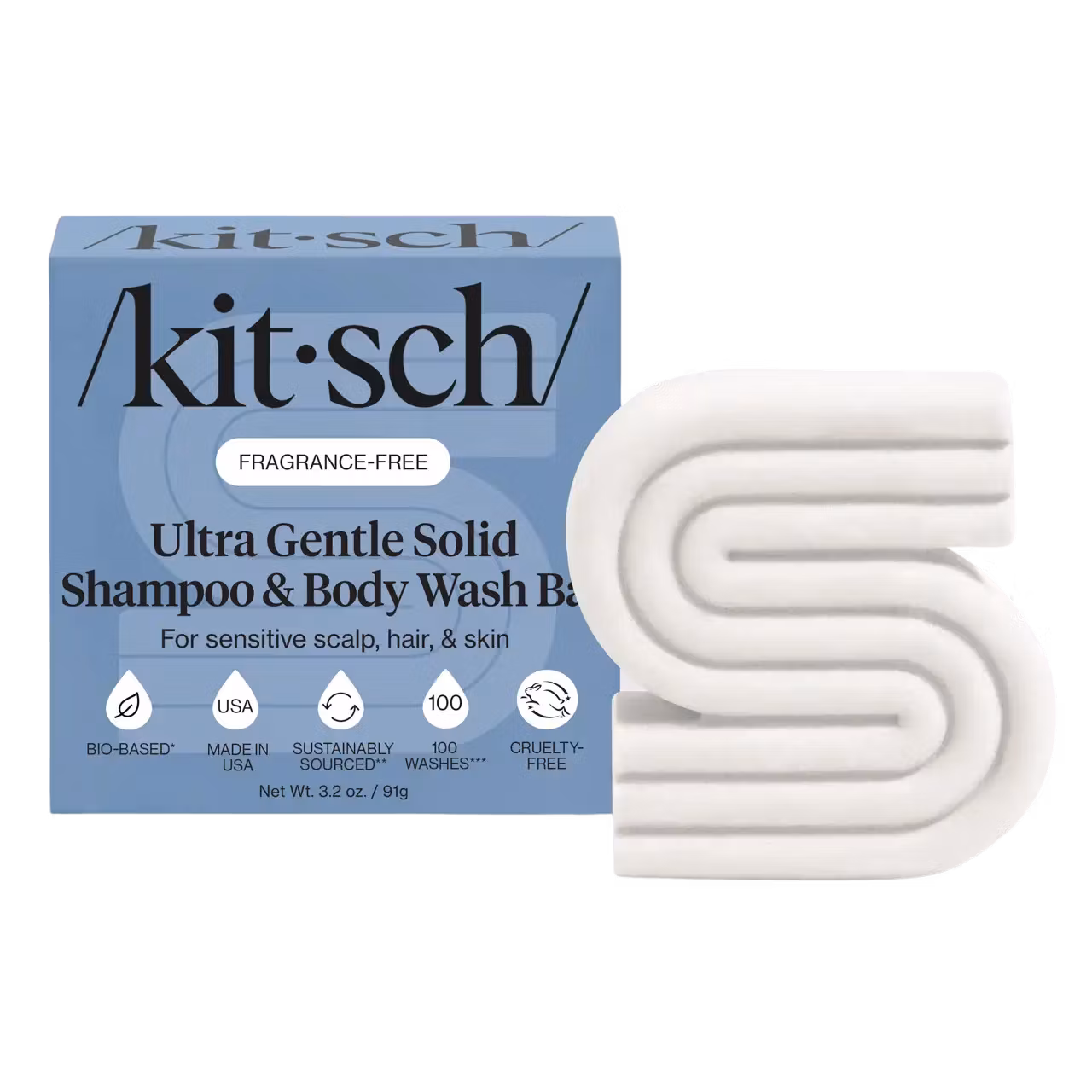 Kitsch 2-i-1 Sjampo og Dusjsåpebar for Sensitiv Hud